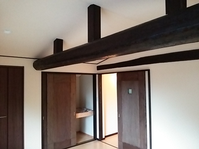 以前は、構造材(丸太)の下に天井が施工されていたので