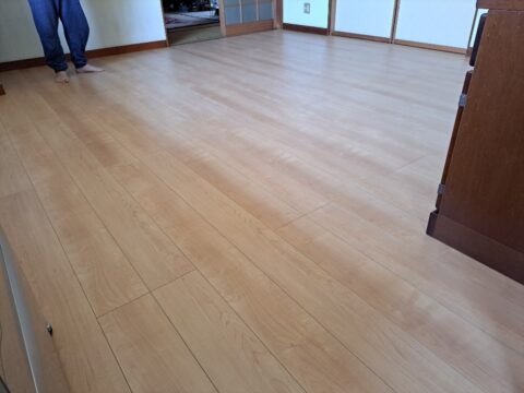 ダイニングの床張り工事♪ 2023年5月19日 池田です。 先日、ダイニングキッチンの床張り作業をさせて頂きました。 今回は、既存の床がしっかりしていた他、現場状況も含めて 既存床の上に6mmの床材で施工させて頂きました。 床材は、DAIKENの「ハピアフロア6T」です。 高さの調整など現場状況に応じてお勧めです。 ありがとうございます。 現在位置 ホーム ブログ ダイニングの床張り工事♪