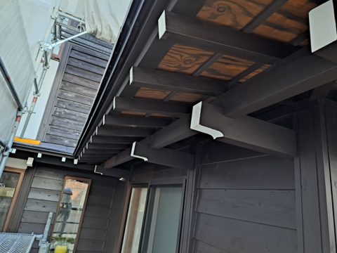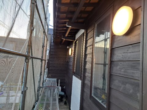 外壁リフォーム工事の続き♪ 2022年10月14日 池田です。 外壁リフォーム工事、着々と進んでおります。 今回、木製部分はリフォーム塗料「ガードラックアクア」を仕様させて頂きました。 既存の雰囲気を変えずに、しっとりとして落ち着いた色、雰囲気が出て良いですね~。 杉板の木目模様もしっかり出ていますね。 <外壁作業の様子> 現在位置 ホーム ブログ 外壁リフォーム工事の続き♪