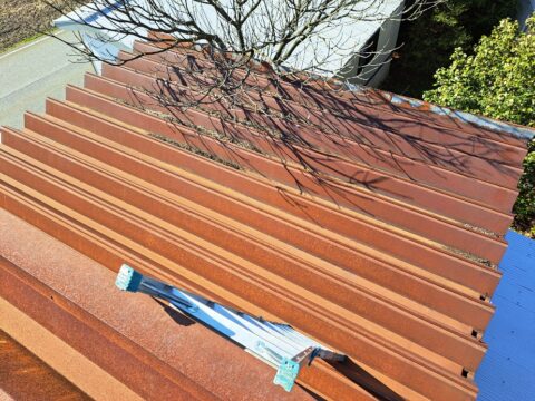 折板屋根の塗装作業♪ 2023年4月24日 池田です。 屋根の塗装作業が始まりました。 始めに屋根の現状確認をしていきます。 築、約30年の折板屋根です。 塗り替え等のメンテナンスが不十分な状態なので、 全体的に錆が付着しています。 今回は、塗り替えの方向で進めていきます。 <折板屋根の様子> 作業開始です。 ペーパーサンダーで表面に浮いている錆取りをしていきます。 次に高圧洗浄機で表面に付着している錆や汚れを落としていき、 塗装作業の下地を造っていきます。 <高圧洗浄作業の様子> 現在位置 ホーム ブログ 折板屋根の塗装作業♪