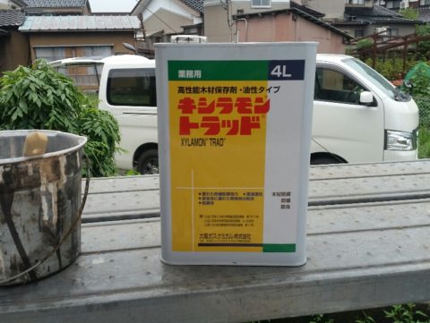 今回の木材保護材は、キシラモントラッドを仕様させて頂きました。