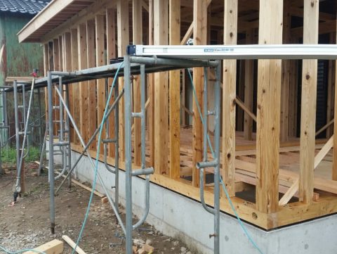 建て方当日は、雨模様でしたが大工職人のみなさんが、頑張ってくれました。