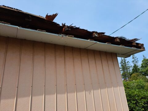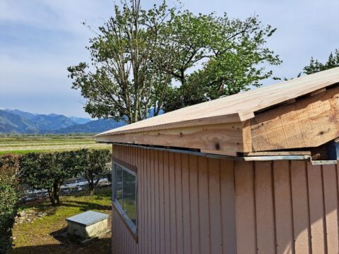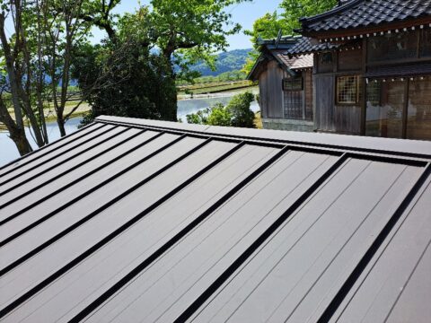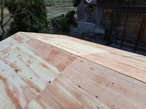 神社の倉庫屋根工事♪ 2023年5月10日 池田です。 先日、神社の倉庫屋根工事をさせて頂きました。 軒先に雨水の侵入があり一部腐食していた為、屋根の張替え作業と一緒に 部材交換や屋根の補強作業を行いました。 昔から続く地域の神社に携わらせて頂き、 ありがとうございます。 <既存屋根の様子> 雨水の侵入があり、一部腐食しておりました。 <下地、補強作業の様子> 腐食部分や野地板など、新しく部材を取り替えていきます。 <屋根の様子 ガルバリウム鋼板立平葺き> 現在位置 ホーム ブログ 神社の倉庫屋根工事♪