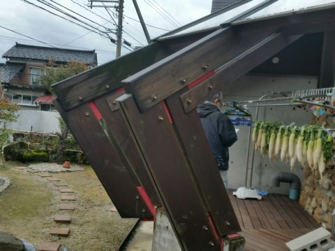 さらに、ポリカ板で屋根面を造って、既存木部デッキ内の雨の侵入も