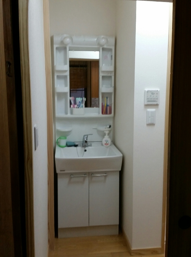 宇奈月の家④(水廻りリフォーム) 2015年8月13日 池田です。 水廻りリフォーム工事、完了しました。 今回、「暖かいお風呂場にしてほしい。」と言う事でしたので、 脱衣室の中に洗面スペースと洗濯機スペースを設ける事によって 今までよりも水廻りの生活環境が良い状態になりました。 生活環境がより良いものになる事でお客様が今まで以上に 幸せになって頂ければうれしい限りです。 また今回、住宅エコポイントも対応させて頂きました。 施主様、ありがとうございました。 ~トクラス、ユニットバス~ ~洗面スペース~ ~洗濯スペース~ 現在位置 ホーム ブログ 宇奈月の家④(水廻りリフォーム)