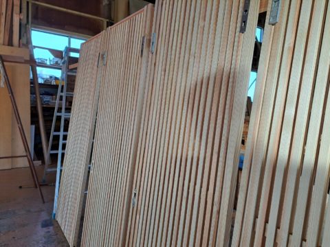 木製建具制作の続き♪ 2022年11月10日 池田です。 木製建具制作の続きです。 作業場で建具の材料を加工して組み上げていきます。 杉材の暖かみある感じがとても良いです。 縦格子を柾目にする事でスッキリとしたデザインになります。 取り付け作業の様子です。 スムーズに作業を進めさせて頂きました。 ありがとうございます。 現在位置 ホーム ブログ 木製建具制作の続き♪