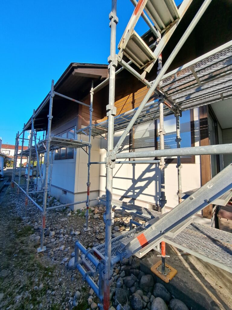 魚津の外壁工事① 始まりました。 2025年10月25日 池田です。 魚津の外壁工事が始まりました。今回は、既存の外壁の上に「重ね張り工法」で作業させて頂きます。 よろしくお願いいたします。 まず初めに、足場を組み立て、既存の状態を確認していきます。 <既存の状態確認> 現在位置 ホーム ブログ 魚津の外壁工事① 始まりました。