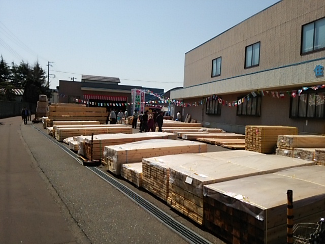 天候もよかったのでたくさんの人がきていて木材、建材、設備機器いろいろなものがありました。