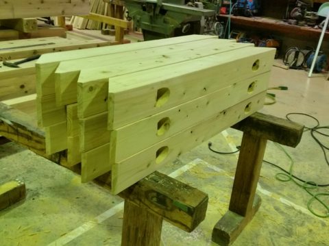作業場では、手刻み作業により構造材の加工をしています。