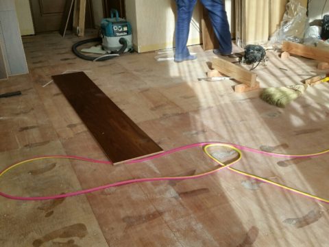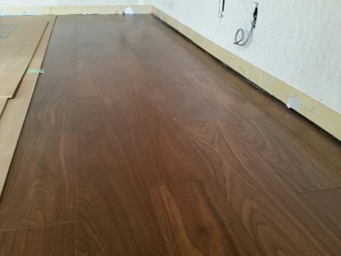 床と腰壁は、「DAIKEN」さんのウォールナットの突板を仕様させて頂きました。