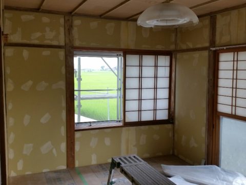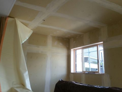 下地の上にプラスタボードを張り、クロス下地をつくっていきます。