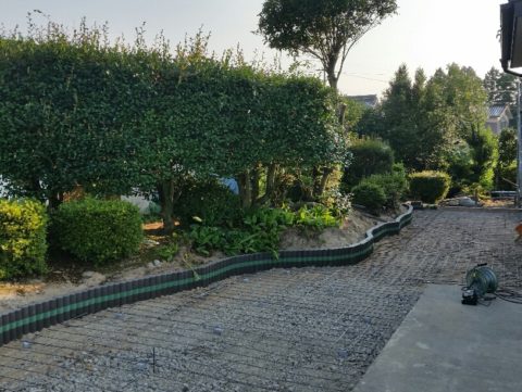 植木とコンクリートの間にガーデニング用ブロックを仕様して