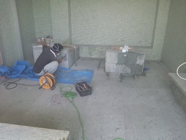 介護施設、浴室補修工事①♪ 2014年8月18日 池田です。 お盆休みも終わり、今日からまた仕事を再開していきます。 みなさん、よろしくお願い致します。 と言う事で介護施設、浴室補修工事はじまりました。 今回の仕事内容は・・・ ・浴槽の石、部分張り替え ・石面、部分的に破損している所をモルタル補修、面取り補修 ・器具の取り替え作業 ・CFの張り替え作業 ・木枠取り替え作業 いろいろな業者さんが絡むので段取りよく進めていきたいと思います。 ~作業の様子~ 現在位置 ホーム ブログ 介護施設、浴室補修工事①♪