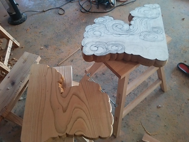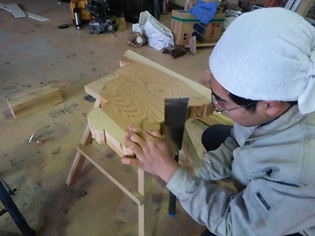 神棚制作はじめております♪ 2015年1月26日 池田です。 神棚制作しています。 今回は、今までと少しデザインを変えています。 材質は、ケヤキを仕様しています。 まず始めに、神棚のデザインのイメージを作り、板で型を作って取っていきます。 ここで型を取る時に仕上がりの木目の位置や模様を浮かべながらきめていきます。 次にのこぎり、ノミ、かんなを使ってカタチを作っていきます。 このようにして、外側をある程度のカタチに仕上げていきます。 ここまですると、いよいよ中の彫り作業になっていきます。 現在位置 ホーム ブログ 神棚制作はじめております♪