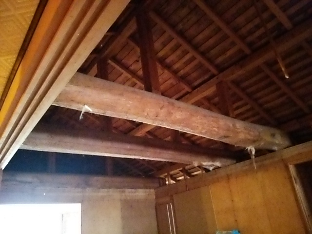 若栗の家。2階リフォーム工事①♪ 2014年6月30日 池田です。 2階リフォーム工事、解体作業始まりました。 解体作業が進むにつれて構造体が現れてきました。 長い間、家を支えている立派な丸太です。 近年の住宅はプレカット作業が主流になってきているので構造体は角材を仕様しているところがほとんどになってきています。 ですので、このような丸太組の構造体を観るのが珍しくなってきました。 今回は、この丸太を活かした部屋づくりを進めていきたいと思います。 現在位置 ホーム ブログ 若栗の家。2階リフォーム工事①♪