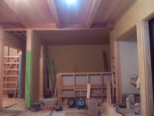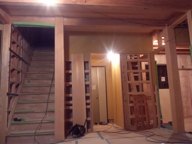 ~栃屋の家。~内部作業 2014年1月20日 池田です。 ~栃屋の家。~施工状況、大工工事も進みいよいよ形になってきました。 リビングのヒノキ6寸角柱もいい感じに存在感を出してきています。 今回は、建具の枠や幅木など造作材は自社加工で作業をしています。 二階の方は壁、天井パテ作業はじまりました。 現在位置 ホーム ブログ ~栃屋の家。~内部作業