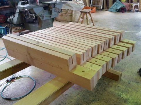 「屋根の改修工事②」手刻み作業と塗装作業♪ 2020年12月18日 池田です。 作業場では、着々と作業が進んでおります。 柱と梁もカタチが特殊ですので、手刻み加工で進めていきます。 既存の部材を取り外して、1本づつ加工していきます。 <手刻み作業の様子> 次に塗装作業です。 塗料は、キシラデコールを仕様しています。 日光や雨風にも強く、耐候性が良く 防虫、防カビにも優れています。 既存の色に合わせながら塗り、仕上げていきます。 <塗装作業の様子> 現在位置 ホーム ブログ 「屋根の改修工事②」手刻み作業と塗装作業♪