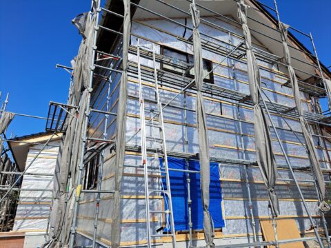 外部の下地は、通気胴縁(ヒノキ材)を仕様させて頂きました。