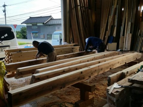 「宇奈月の家⑤」手刻み作業 (木材加工偏)♪ 2020年8月18日 池田です。 お盆休みもあっという間に過ぎていきましたね。 皆さま、今年はどのように過ごされていたでしょうか。 さて、「宇奈月の家。」手刻み作業の木材加工に進んでいます。 電動機械、カンナ、ノミを使いながら皆で分担して作業を進めていきます。 <桁、梁の手刻み作業> <土台(ヒノキ材)の手刻み作業> <傾斜梁の手刻み作業> それぞれ、丁寧に手刻みをして仕上げていきます。 杉やヒノキの香りがとても心地よいですね~。 <各種仕上がりの様子> 現在位置 ホーム ブログ 「宇奈月の家⑤」手刻み作業 (木材加工偏)♪