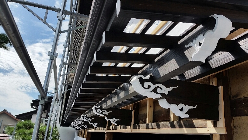 お寺様リフォーム③ 庇、化粧材を取付中♪ 2016年10月2日 池田です。 10月に入り、いよいよ外壁作業が始まりました。 既存の外壁材を外して新しく下地をしていきます。 途中、スズメ蜂の巣もありましたが、巣は抜け殻状態でしたので 素早く撤去させて頂きました。 木部化粧材は、既存建物なので下地の通りをしっかり合わせながら 取り付けていきます。 今回、庇の距離が長いので仕上がりもその分、綺麗に仕上がりました。 天候も良く、気持ちよく作業させて頂いております。。 <外壁作業の様子> <化粧庇の取付作業の様子> <スズメ蜂の巣> 現在位置 ホーム ブログ お寺様リフォーム③ 庇、化粧材を取付中♪