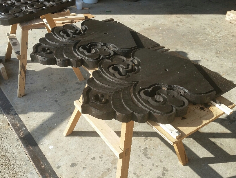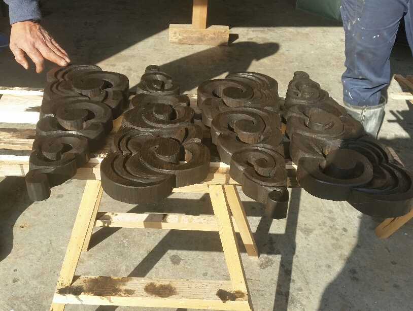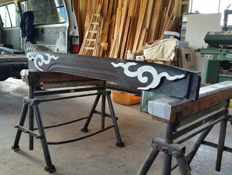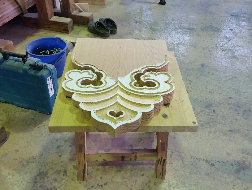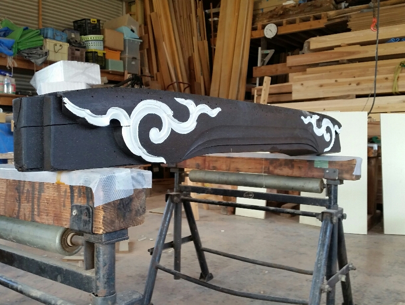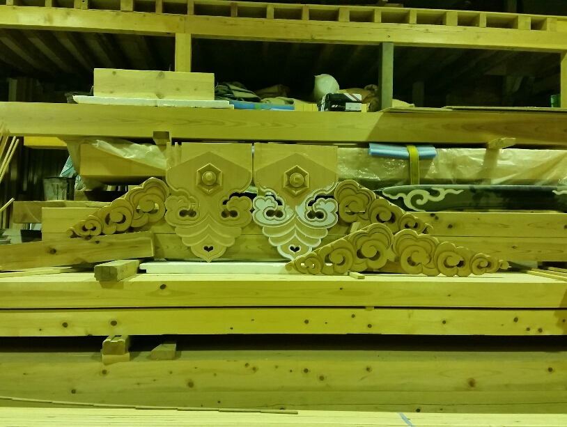 お寺様リフォーム⑤ 懸魚(げぎょ)と虹梁(こうりょう)♪ 2016年11月30日 池田です。 11月も終わりに近づいてだいぶ肌寒くなってきましたね。 次に、外部の懸魚(げぎょ)製作と虹梁(こうりょう)補修作業に 進んでいます。 懸魚は、木造寺院を火災から守るための まじないが始まりと考えられているそうです。 仕事させて頂きながら、その由来など同時に勉強させて頂き 貴重な経験をさせて頂いております。 材料の一部は、既存解体時に避けていた材料を加工し 新たに懸魚として使用させて頂きました。 <懸魚製作の様子> <塗装して仕上がりになります。> 既存の虹梁を塗装し直し、新しい場所に取付予定です。 <虹梁の修繕> 現在位置 ホーム ブログ お寺様リフォーム⑤ 懸魚(げぎょ)と虹梁(こうりょう)♪