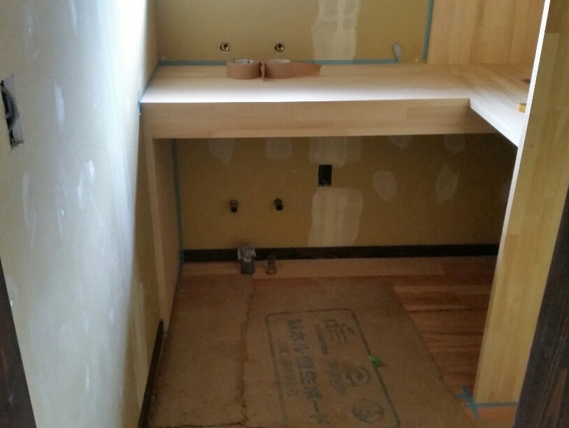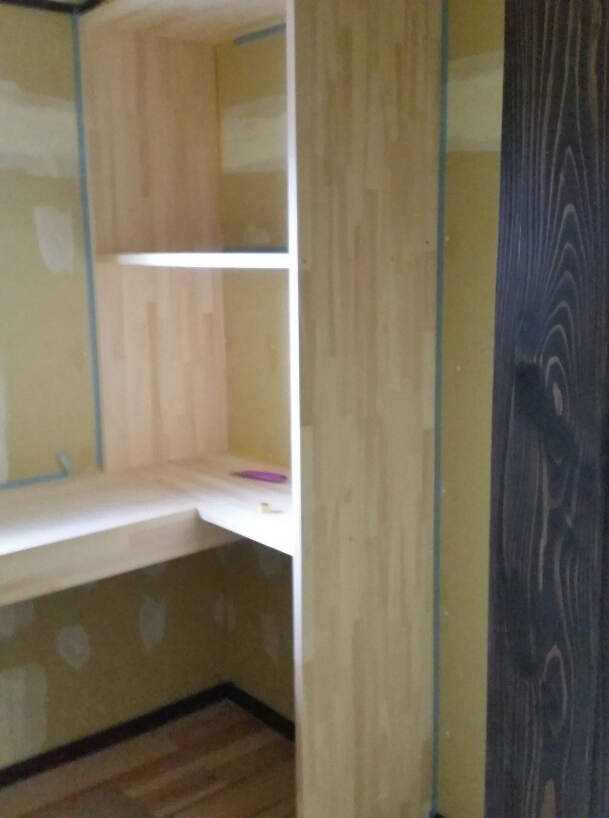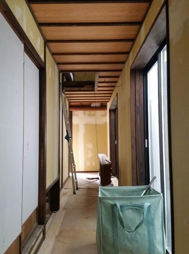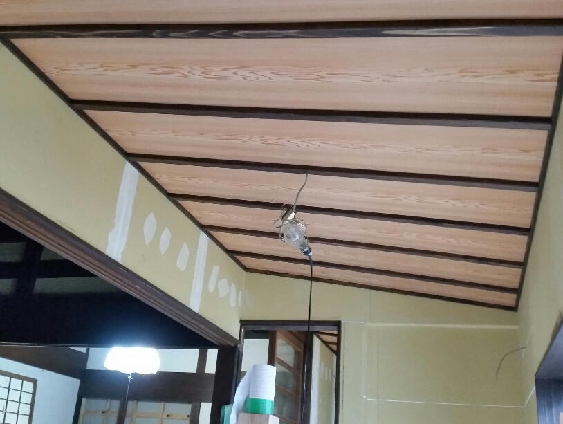 お寺様リフォーム⑫ 1階内部作業つづき② 2017年3月8日 池田です。 1階内部の天井張り作業に入ってきました。 今回は、和風ラミネート天井に作業場で加工した 造作材を合わせて仕上げていきます。 (和風ラミネート天井) 造作材の様子です。 廻縁や竿は、自社で加工していますので現場の寸法に 合わせながら造作材の大きさを決めていきます。 そうする事で納まりを無駄なくし、仕上がりを スッキリみせていく事ができます。 (天井用造作材の様子) (和風天井の様子) そのほか、木製オーダーキッチンカウンターや収納も 形になってきました。 (オーダーキッチンカウンター オーダー収納) 現在位置 ホーム ブログ お寺様リフォーム⑫ 1階内部作業つづき②