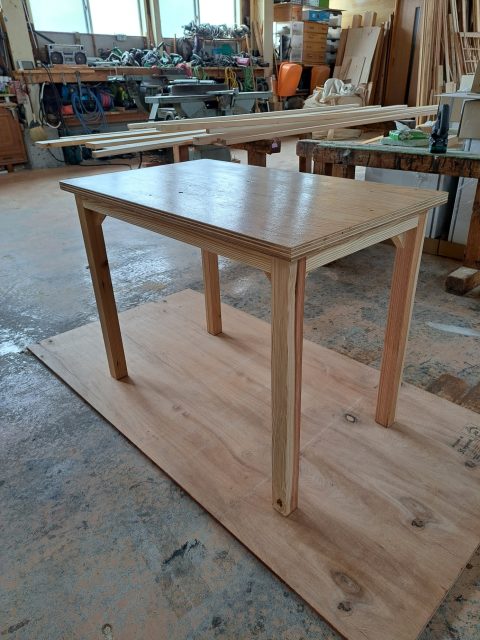 ダイニングテーブルの制作♪ 2025年2月18日 池田です。 ダイニングテーブルを制作させて頂きました。 ありがとうございます。 サイズは、600×1200です。 2人で使用するのに丁度良いサイズ感です。 天板は、針葉樹の集成板なので、オーダーサイズで造る事が可能です。 脚は、杉材を使用させて頂きました。 木の温もりや香りを感じながらも軽量に仕上げさせて頂きました。 <ダイニングテーブルの様子> 現在位置 ホーム ブログ ダイニングテーブルの制作♪