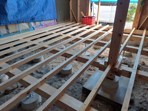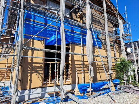 古民家リフォーム 下地作業♪ 2023年10月2日 池田です。 天候にも恵まれ、外部の下地作業が順調に進んでおります。 今回は、建物全体の耐震強化が目的なので、外部に耐力壁(ハイベストウッド)を施工させて頂きました。 <外部作業の様子> ハイベストウッドを施工する事で耐震性はもちろんですがその他、気密性や断熱性の向上、 通気工法にも性能を発揮します。 <耐力壁ハイベストウッドの様子> 内部の様子です。 既存の床を取り外して新しく取り替えていきます。 大引き、タルキは、ヒノキ材を仕様させて頂きました。 <内部床の様子> 現在位置 ホーム ブログ 古民家リフォーム 下地作業♪