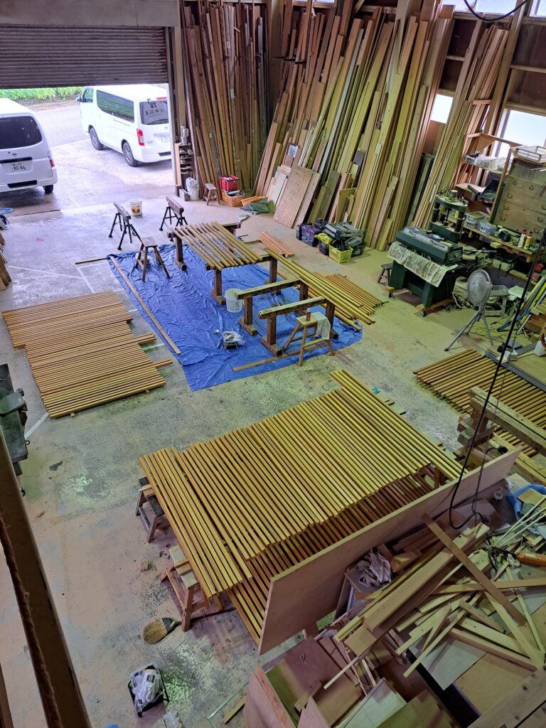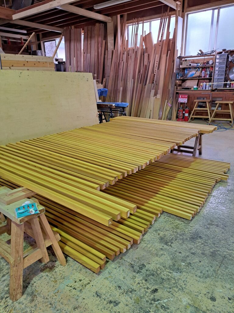 木材の加工作業を終えて、次に塗装作業に入っていきます。