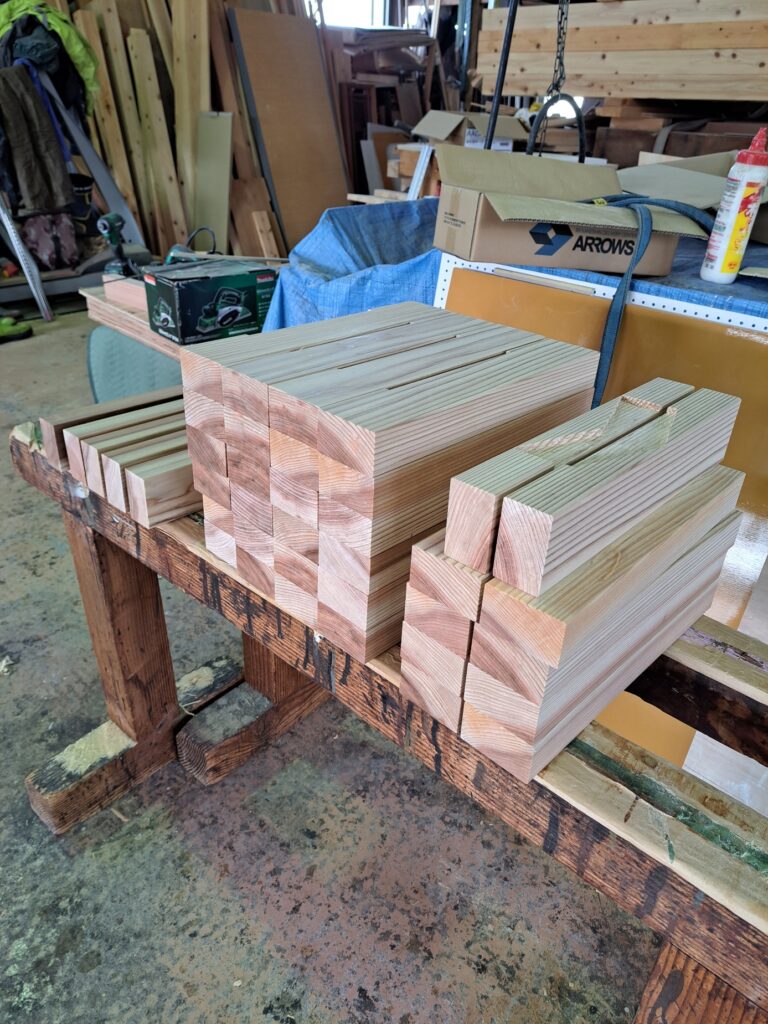 外部の木製看板制作② 手刻み加工。 2025年12月2日 池田です。 作業場では、木製看板制作の手刻み作業と木材の加工をして準備していきます。 柱の刻み作業の様子です。 今回は、108度の勾配なので、事前に地墨を書いてそれに合わせて、木材を加工していきます。 材質は、「ヒノキ」を使用します。そうすることで、雨にさらされても耐久性を持たせます。 <手刻み作業の様子> 木製格子部分の様子です。材質は、「杉」を使用することで、柔らかな雰囲気に仕上がります。 <木製格子の加工> 現在位置 ホーム ブログ 現在の施工状況 外部の木製看板制作② 手刻み加工。