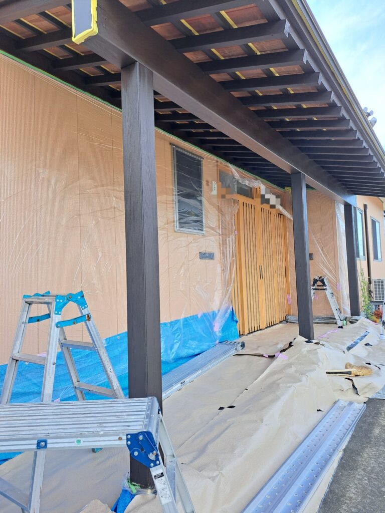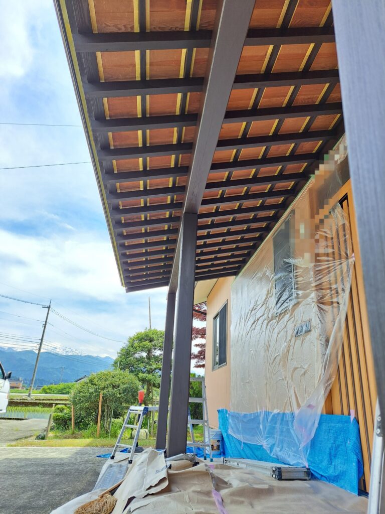 外部木製格子の制作②既存屋根の塗装作業。 2025年5月20日 池田です。 既存玄関ポーチの塗装作業の様子です。 今回、既存部分に使用する塗装は、「ガードラックアクア」です。 ガードラックアクアは、水性のリフォーム塗料です。 高い耐候性や撥水性、防虫、防腐、防カビなどに効果を発揮し、着色性も強く取り扱いしやすい塗装です。 <塗装作業の様子> 現在位置 ホーム ブログ 外部木製格子の制作②既存屋根の塗装作業。