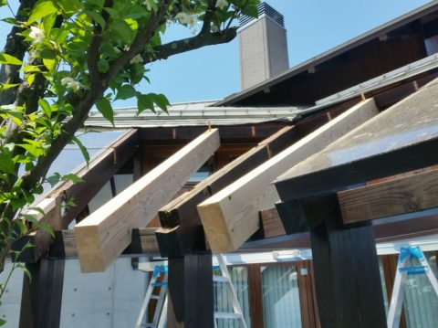 今回は既存梁材の腐食部分を交換させて頂きました。