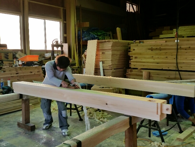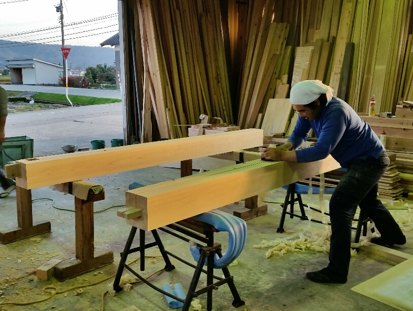 田家の家⑨ひのき6寸角、仕込み中です♪ 2016年4月15日 池田です。 きざみ作業も終盤になってきました。 化粧6寸角柱、仕上げております。 材質は、桧です。 今回は、若い大工さん2人が化粧柱の仕上げに 頑張ってくれています。 ありがとう~。 2人共、20代前半です。 間違えなく、次を担う大工さんになってほしいですね。 頑張れ♪ (自分もまだまだ頑張りますよ♪) ~化粧柱、加工作業の様子~ 現在位置 ホーム ブログ 田家の家⑨ひのき6寸角、仕込み中です♪