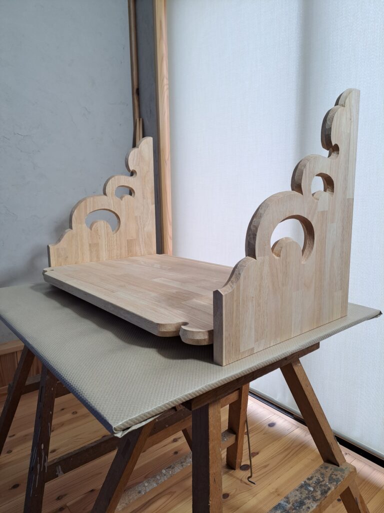 神棚の制作① 彫刻と組み立て作業。 2025年12月12日 池田です。 お施主様の転居に神棚を制作させて頂きます。 今回は、シンプルなデザインに仕上げさせて頂きます。材質は、「ラバーウッド」を仕様させて頂きました。ラバーウッドは適度な硬さがあり、細かな木目であることが特徴です。 シンプルに彫刻して、カタチを造り上げていきます。 <神棚の組み立ての様子> 現在位置 ホーム ブログ 神棚の制作① 彫刻と組み立て作業。