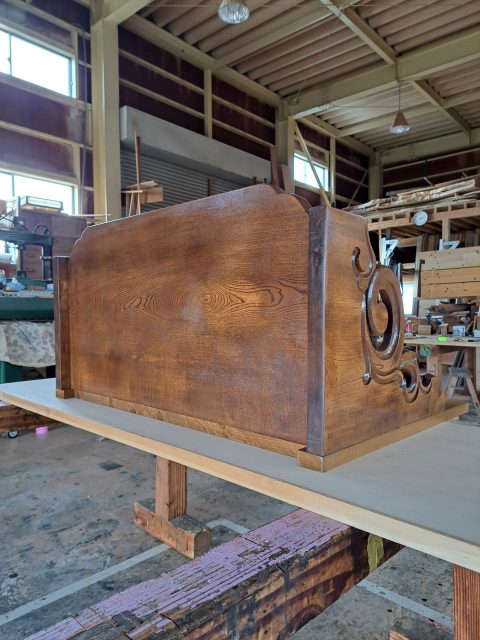 神棚リメイク作業④塗装作業が完了しました♪ 2025年4月3日 池田です。 神棚リメイク作業、塗装作業が完了して作業場に戻ってきました。 今回は、水性ウレタン塗料で仕上げさせて頂きました。 既存の雰囲気に合わせながら、表面の艶と木の木目がしっかり出て、 落ち着いた、重厚感のある仕上がりになりました。 ありがとうございます。 <神棚 水性ウレタン塗装仕上げ> 現在位置 ホーム ブログ 神棚リメイク作業④塗装作業が完了しました♪