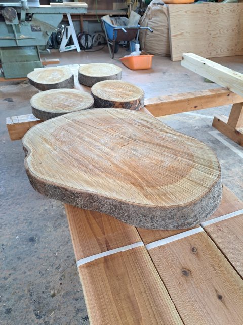 輪切りテーブルと椅子の制作♪ 2025年3月15日 池田です。 輪切りのテーブルと椅子の制作が始まりました。 今回は、お施主様にケヤキの輪切りを支給して頂きまして、 脚は、こちらでご用意させて頂きます。 よろしくお願いいたします。 <ケヤキの輪切りの様子> 現在位置 ホーム ブログ 輪切りテーブルと椅子の制作♪