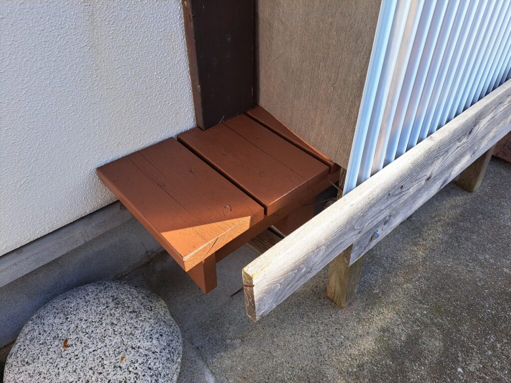 塗装作業の様子です。 ウッドデッキ部分は、キシラデコールコンゾランを使用させて頂きました。キシラデコールコンゾランは、水性で乾きが早く、「防腐性、防カビ性、防虫性」に優れており、色付きも良いのでリフォーム塗料に優れています。