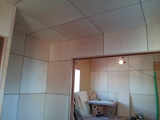 西魚津の家♪⑦(リフォーム) 2014年12月21日 池田です。 床、壁、天井の仕上げ作業も終わりました。 床材は、複合フローリング(大建工業)を仕様、 壁、天井は今回、シナベニヤの目透し張り(一部クロス張り)に施工させて頂いております。 後は、設備機器取付とハウスクリーニングで仕上がりになっていきます。 ~仕上げ作業の様子(壁、天井=シナベニヤ仕様)~ 現在位置 ホーム ブログ 西魚津の家♪⑦(リフォーム)