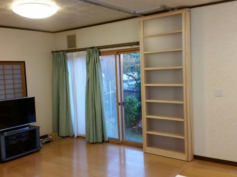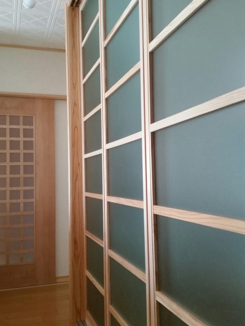 スペースを広げたい時に建具を外さずに、壁面に収納する事ができます。