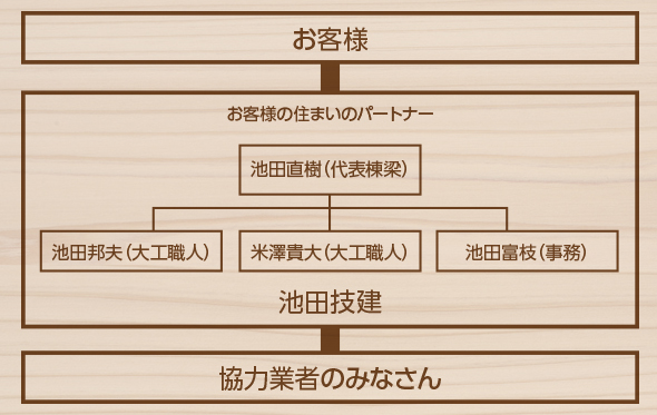 そのような考えで私たちは、住まいのパートナーとしてお客様の幸せを願って、毎日お仕事させて頂いております。それが、池田技建です。
