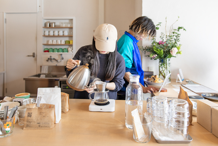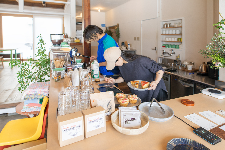 焼き菓子とコーヒーが中心のカフェHEAPSは、ご夫婦の心が行き届いた温かで安らぎあふれる空間。地元の人、移住者、家族連れなど多様な皆さんが訪れ、思い思いに憩いのひとときを過ごしていきます。若林さんは「カフェという場所を通して、まちにちょっとした変化が生まれてくれたらうれしい」と願っています。