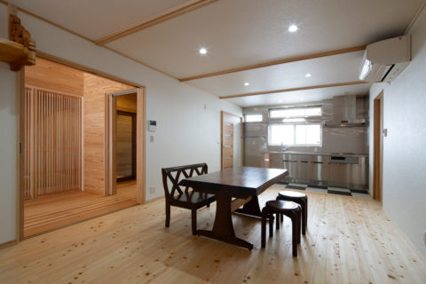 ・自社制作による、建具、神棚、テーブル。