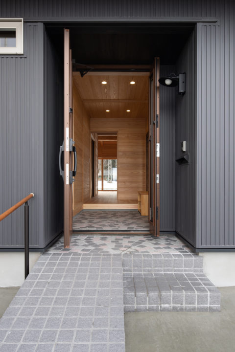 ・アプローチ、玄関にピンコロ石を仕様。