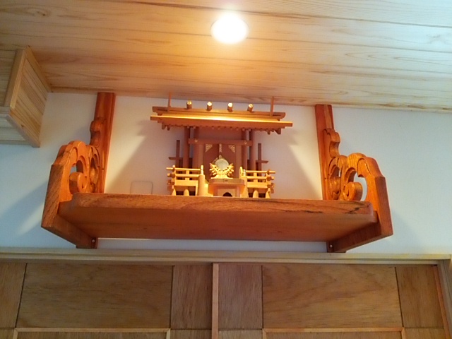 神棚③ ケヤキ 2024年10月23日 リメイクした神棚です。 以前から建て替えにより預からせて頂いた神棚を新たにリメイクすることになりました。お家の建て替えと同様に神棚も新しくします。 以前までの神棚 制作過程はこちらの記事をチェック! ~神棚制作、新たにリメイクします。~解体、荒彫り作業編 ~神棚制作、新たにリメイクします。2~仕上げ彫り、組立編 ~神棚制作、新たにリメイクします♪~仕上げ、塗装編 ~神棚制作、新たにリメイクします♪~取付作業編。 リフォーム 店舗&施設 新築 オーダーメイド家具 無垢テーブル 神棚・神具など 階段 家具・カウンター 建具 その他 現在位置 ホーム 施工実績 オーダーメイド家具 神棚・神具など 神棚③ ケヤキ
