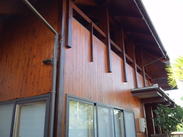 外壁工事① 2013年7月5日 池田です。 Y様邸外壁工事、完了致しました。 塗装を塗り替えたことに外壁もより味が出てきていい仕上がりになりました。 これでまた木の家も長持ちします。 西側部分は、日差しの関係もあり木の収縮がありましたので、角スパン貼りにしました。 施主様、ありがとうございました! リフォーム 店舗&施設 新築 オーダーメイド家具 無垢テーブル 神棚・神具など 階段 家具・カウンター 建具 その他 現在位置 ホーム 施工実績 リフォーム 外壁工事①